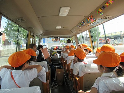幼稚園バスでお芋のお話を聞きながら向かいました