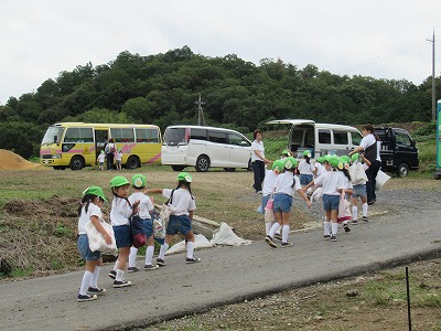収穫後幼稚園バスで帰ります
